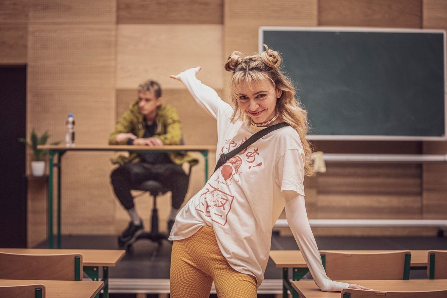 Historia chłopaka i dziewczyny – zwykłych nastolatków ze zwykłej szkoły. Bohaterowie czasami wykrzykują swoje marzenia o buncie, a czasami tylko siedzą i gapią się w okno. Spektakl o przyjaźni, o tym jacy jesteśmy i jak widzi nas świat, o przekraczaniu granic i chwilach, których nie da się przewinąć wstecz jak kawałka playlisty.