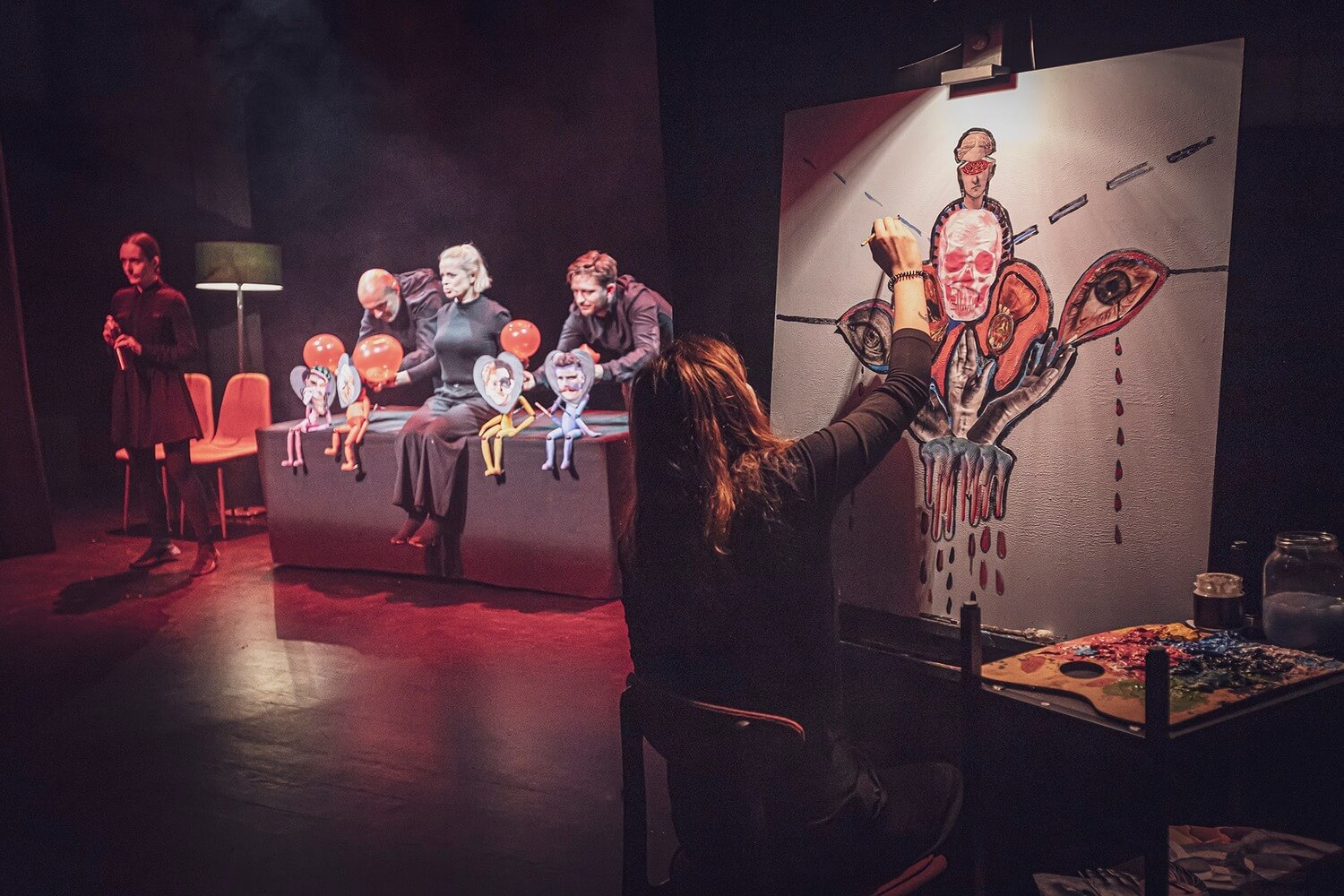 Spektakl wykorzystuje możliwości teatru lalek oraz formułę tworzenia „na żywo” (podczas każdego przedstawienia artystka maluje obraz korespondujący z poruszanymi na scenie kwestiami).