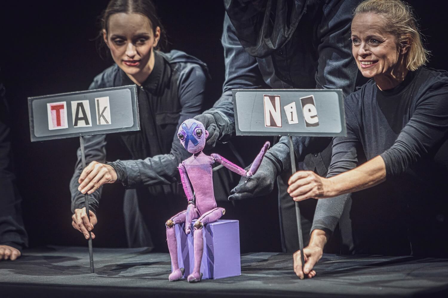 reżyseria: Justyna Łagowska, tekst i dramaturgia: Daria Sobik, ruch: Milena Czarnik, muzyka: sprzęga, działania pedagogiczno-teatralne: Agata Kędzia, konsultacje psychologiczne: Anna Mandat, obsada: Natalia Bielecka, Paweł Charyton.